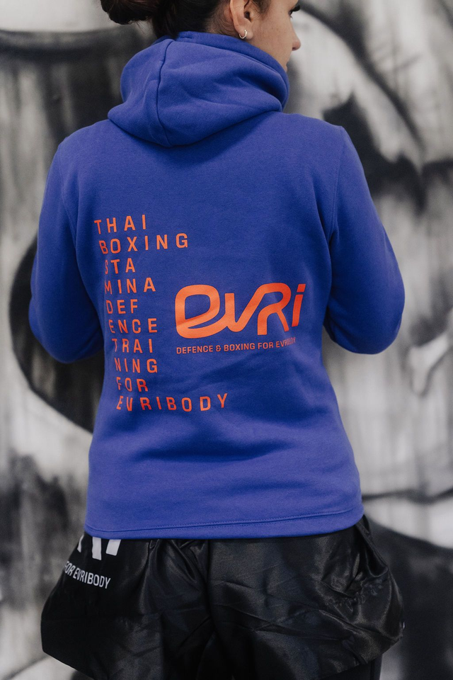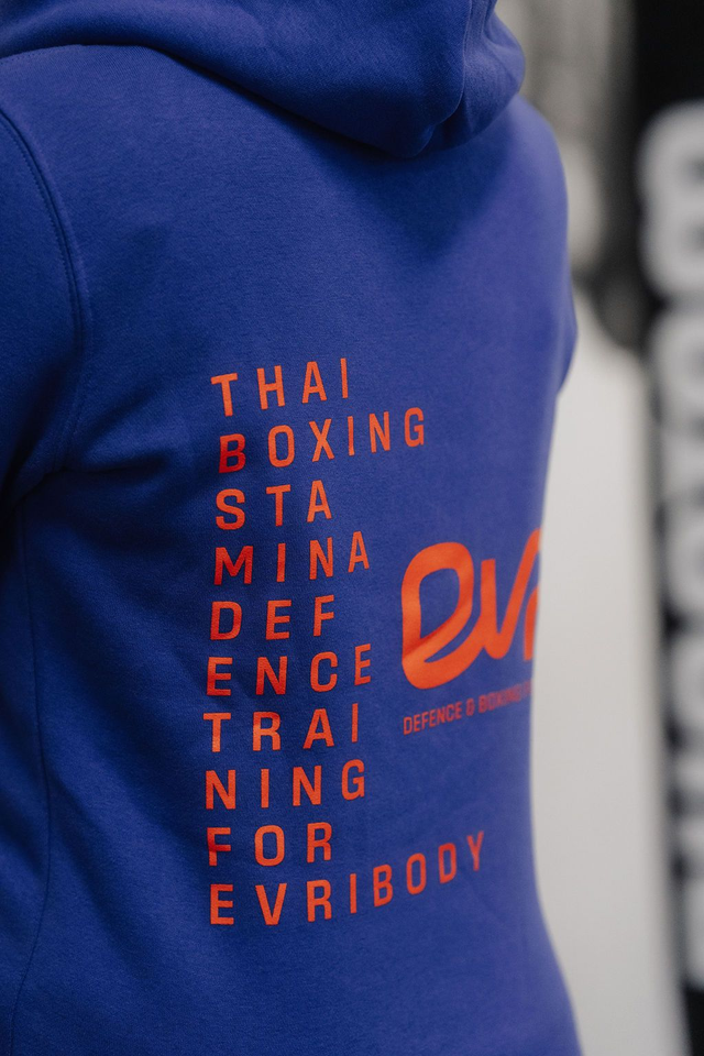 Der Hoodie ist angenehm weich, hochwertig verarbeitet und ideal für Training, Alltag oder als Teamwear. Egal ob auf dem Weg ins Gym oder in der Freizeit: Mit diesem Hoodie zeigst du deine Verbundenheit zu EVRI – Defence & Training for Everybody.